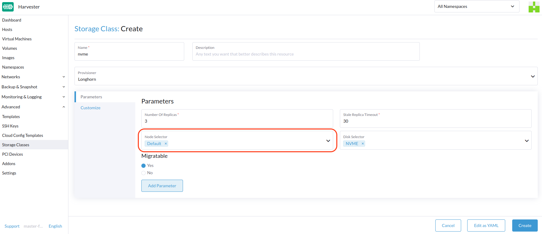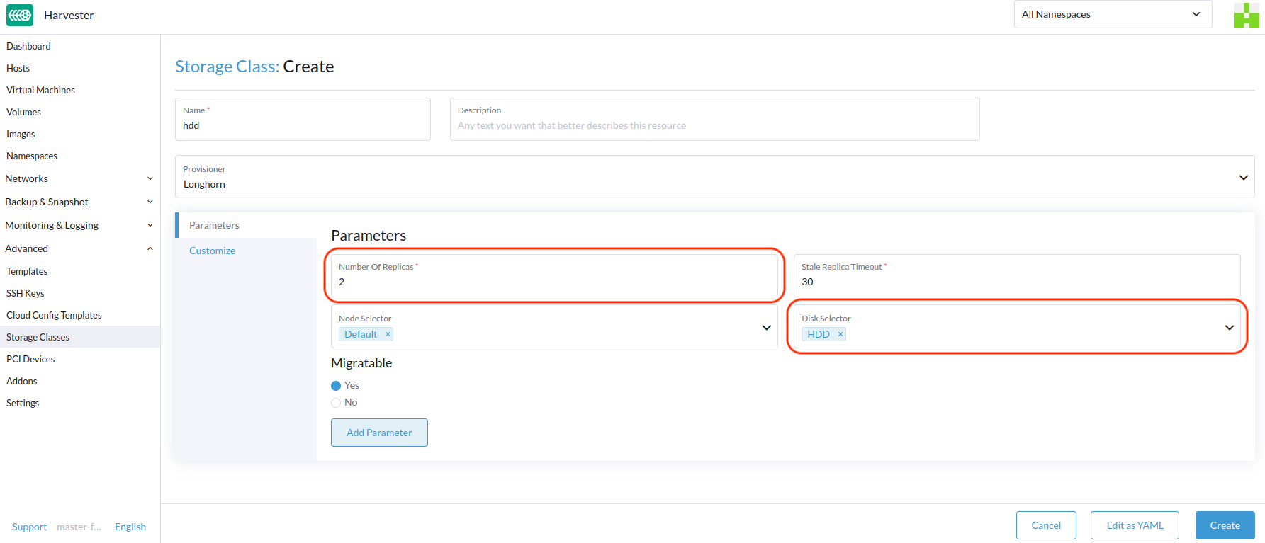 Then, create a new StorageClass for the HDD (use the above disk tags). For hard drives with large capacity but slow performance, the number of replicas can be reduced to improve performance.