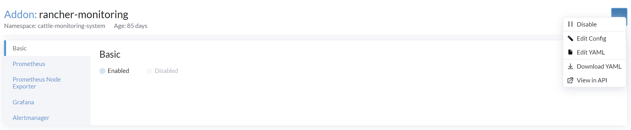 You can disable an Enabled by choosing an addon and selecting ⋮ > Disable or from the Basic tab.