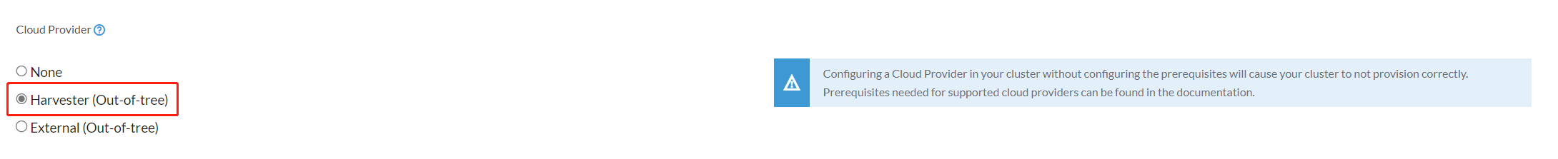 Harvester Cloud Providerfrom the Rancher marketplace.